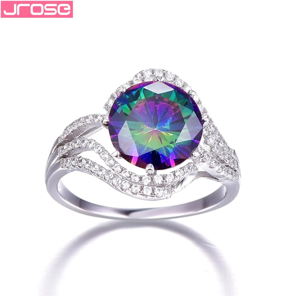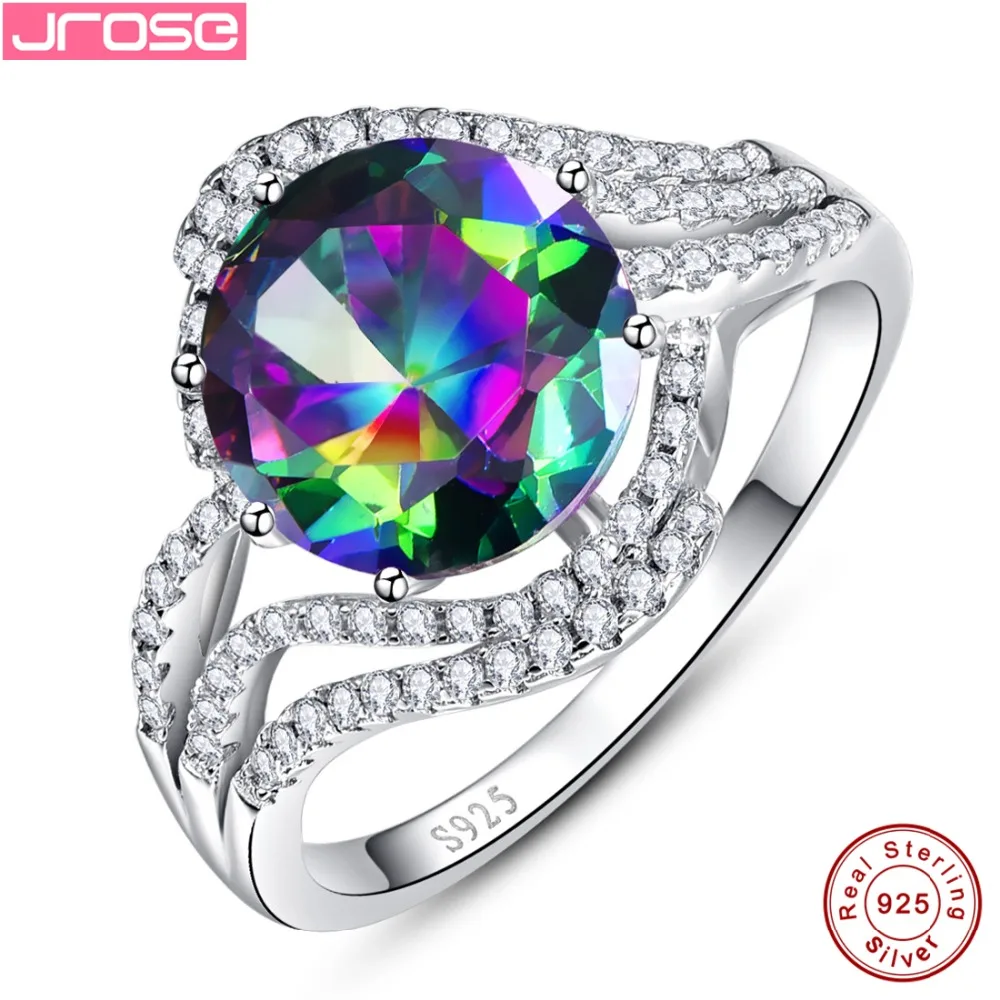 HIGH QUALITY Jrose Brand New 5ct Rainbow Fire Mystic CZ Ring Gift For Women Genuine Solid 100% 925 Sterling Silv