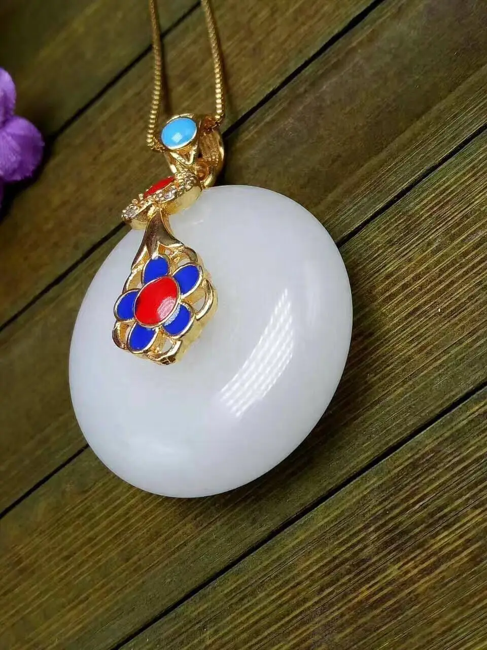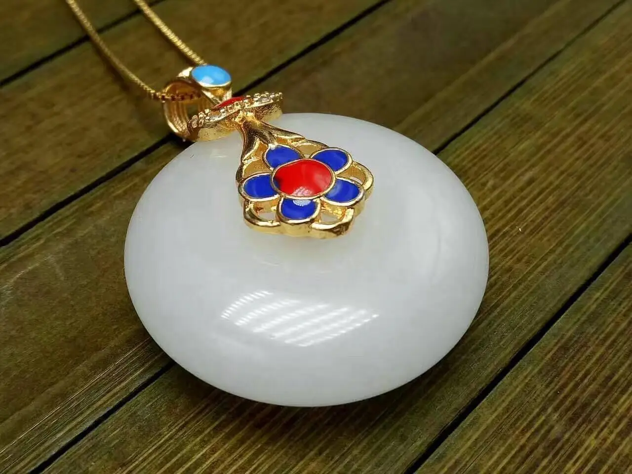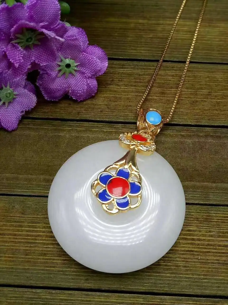 Koraba Fine Jewelry Unique Fashion Natural White Jade Carving of Peace Buckle Shape Pendant Necklac