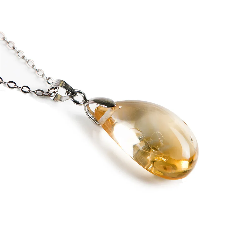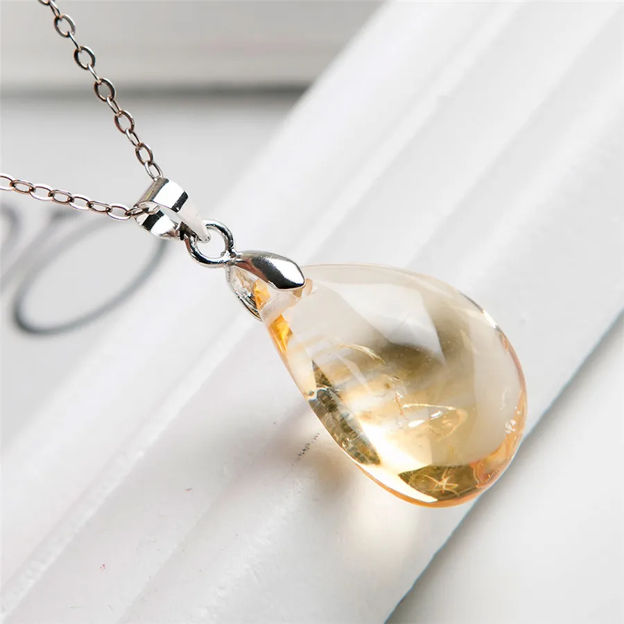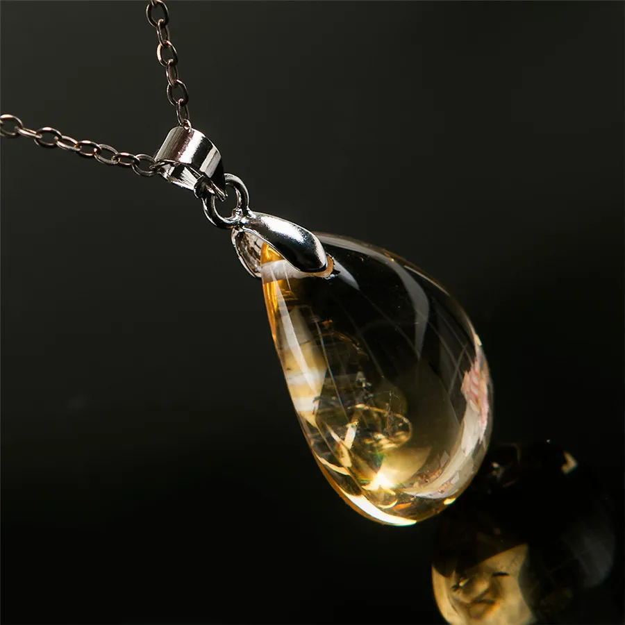 Drop Shipping Genuine Natural Yellow Golden Quartz Crystal Water Drop Bead Necklace Pendant 24*16*9