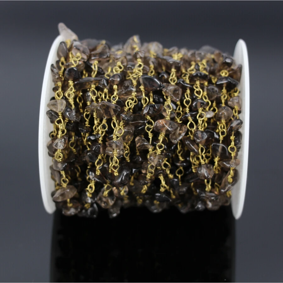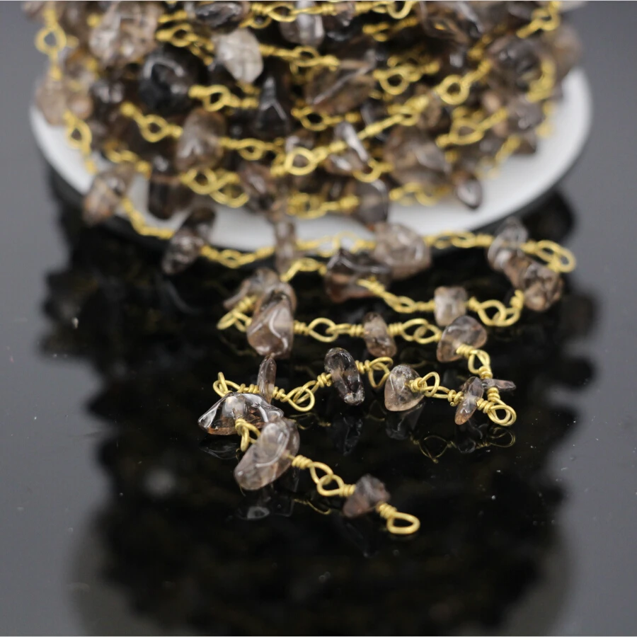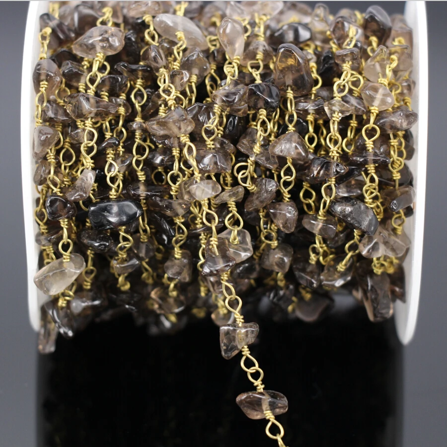 HIGH QUALITY 5MeterNatural Smoky Quartz Rosary Chainfashion Smoky Crystal Chip Beads Link Brass Wire Wrapped Cha