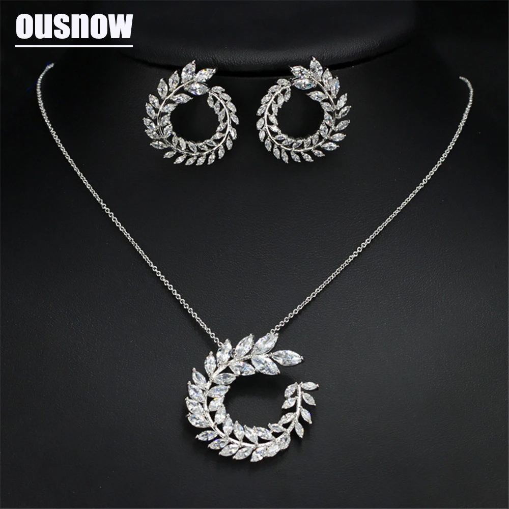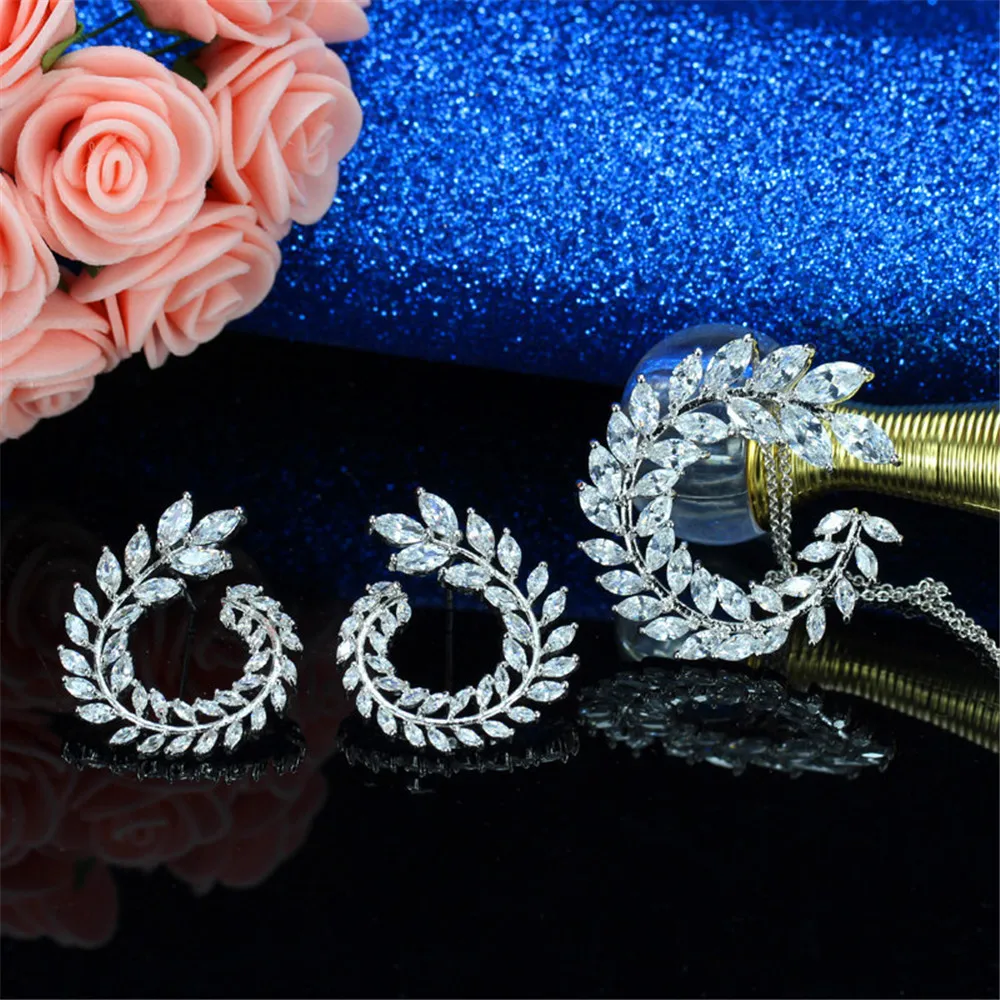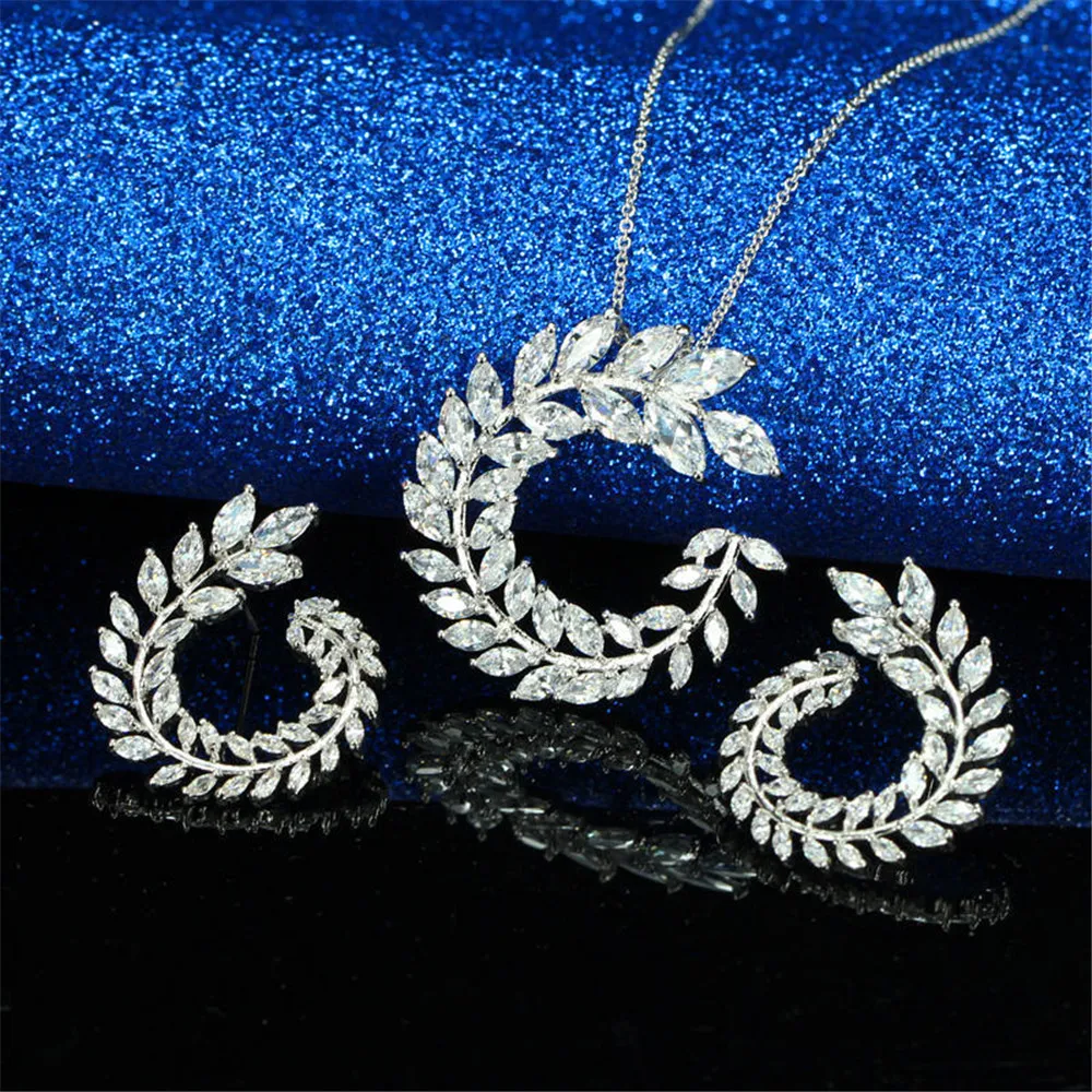 Fashion Jewelry Silver color Sets Sparkly Olive Branch Leaf Shape Crystals from Austrian Pendant Ne