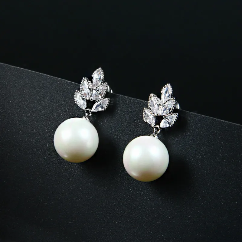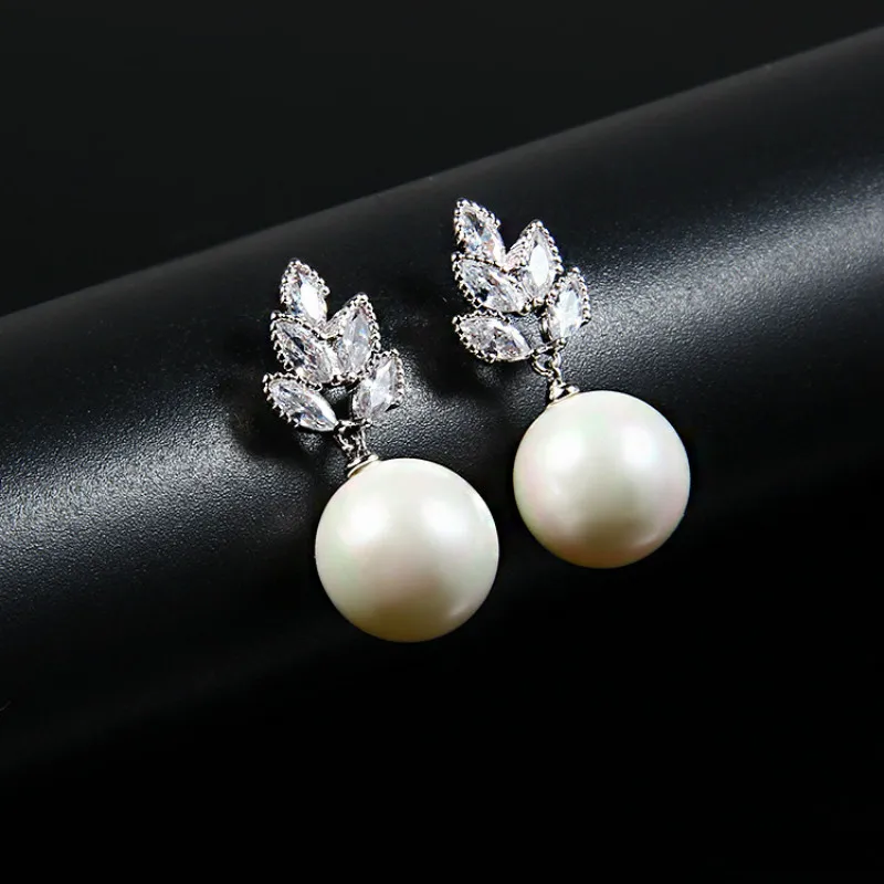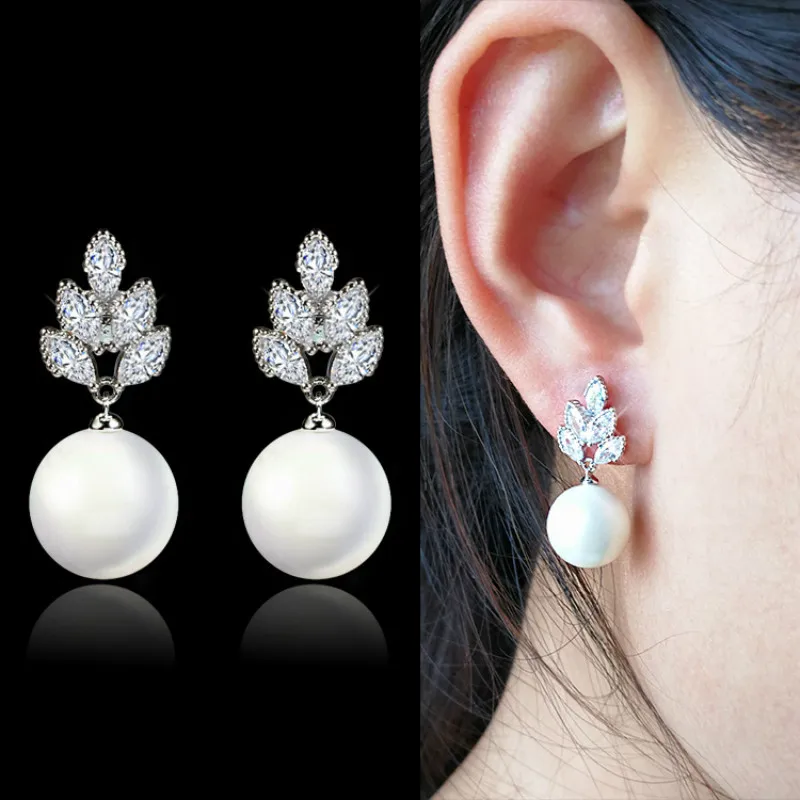 BEST QUALITY Korean New Style Fashion 925 Sterling Silver Pin Earrings Wild Wearing Cute Zircon Pearl Earrings F