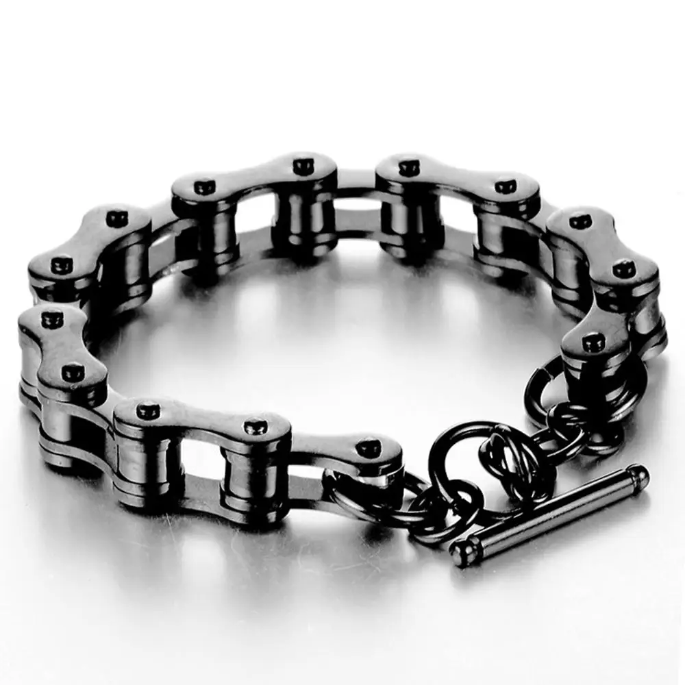BEST SELLER Retro Black Stainless Steel Motorcycle Chain Men Bracelet Male 10MM Wide Best Friends Mens Bracelet