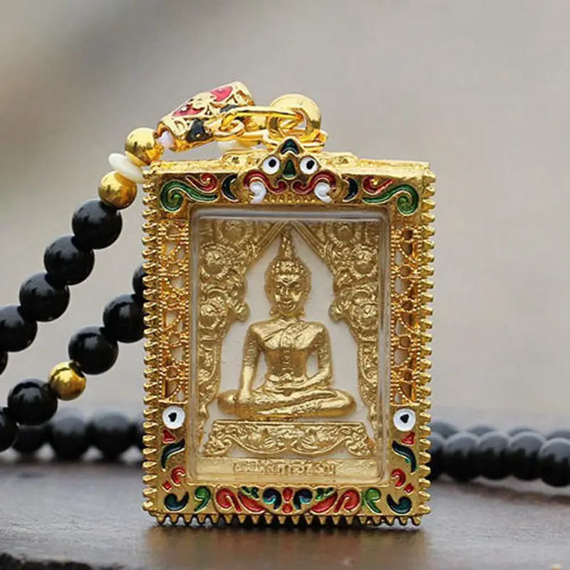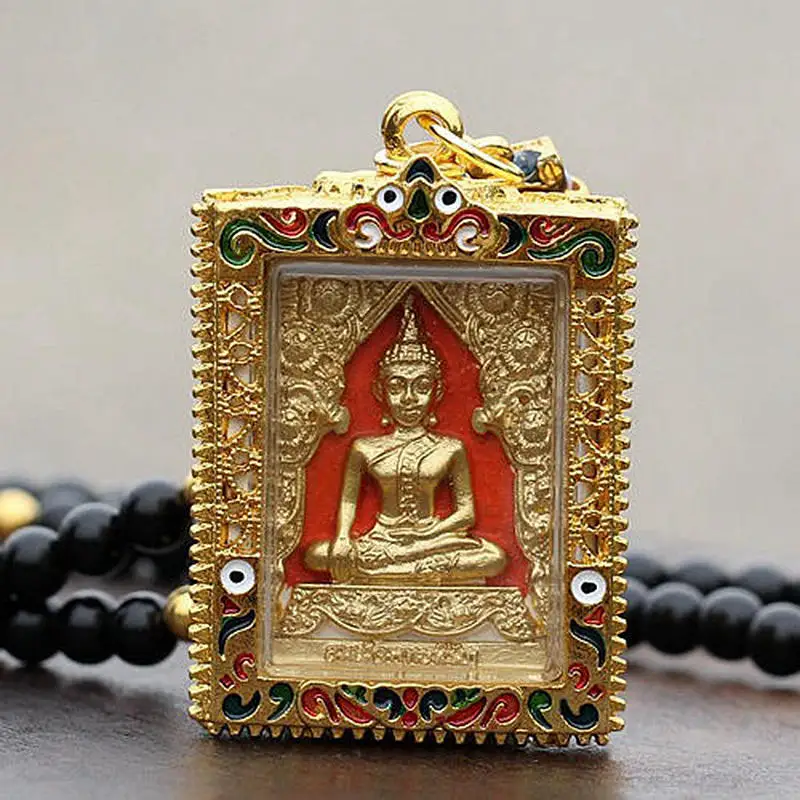 Vintage Golden Buddha Amulet Pendant Necklace Fashion Bead Chain Thailand Buddha Amulets Pendants J