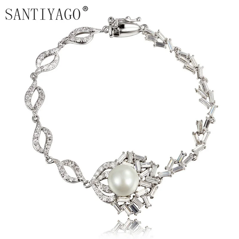 Hot Bracelet Fashion Link Chain Plated with Beads simulated Pearl Bracelets love Women Jewelry Pear