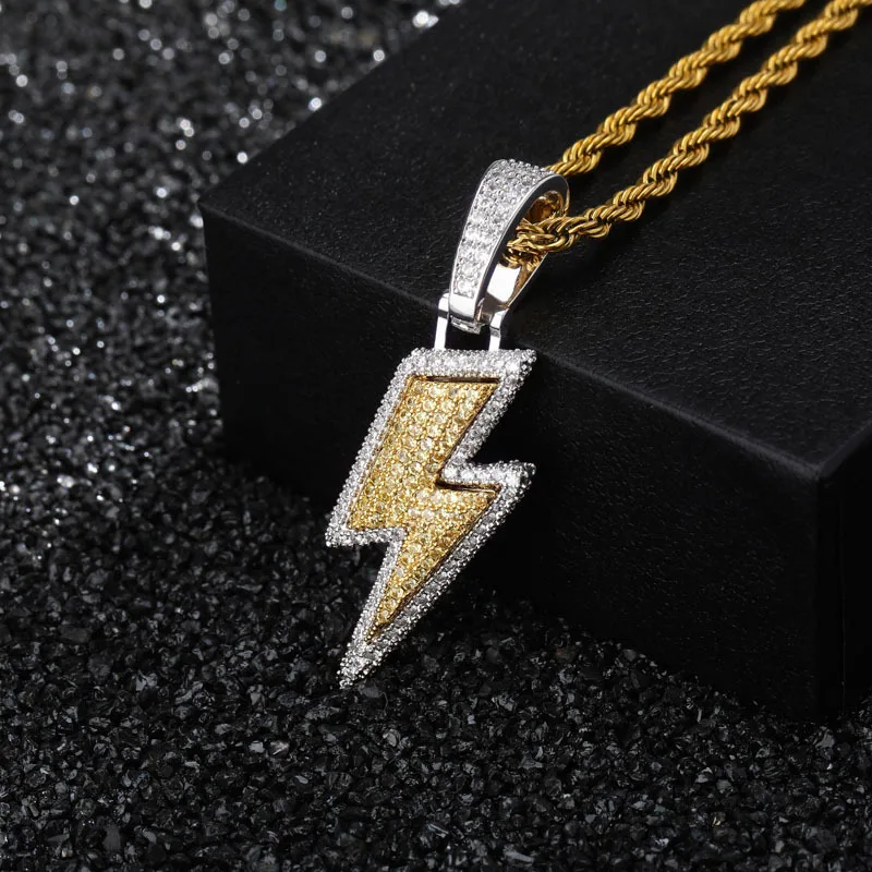 Review Ice out lightning hip hop pendant full of zircon hip hop men's fashion necklace jewelry gift
