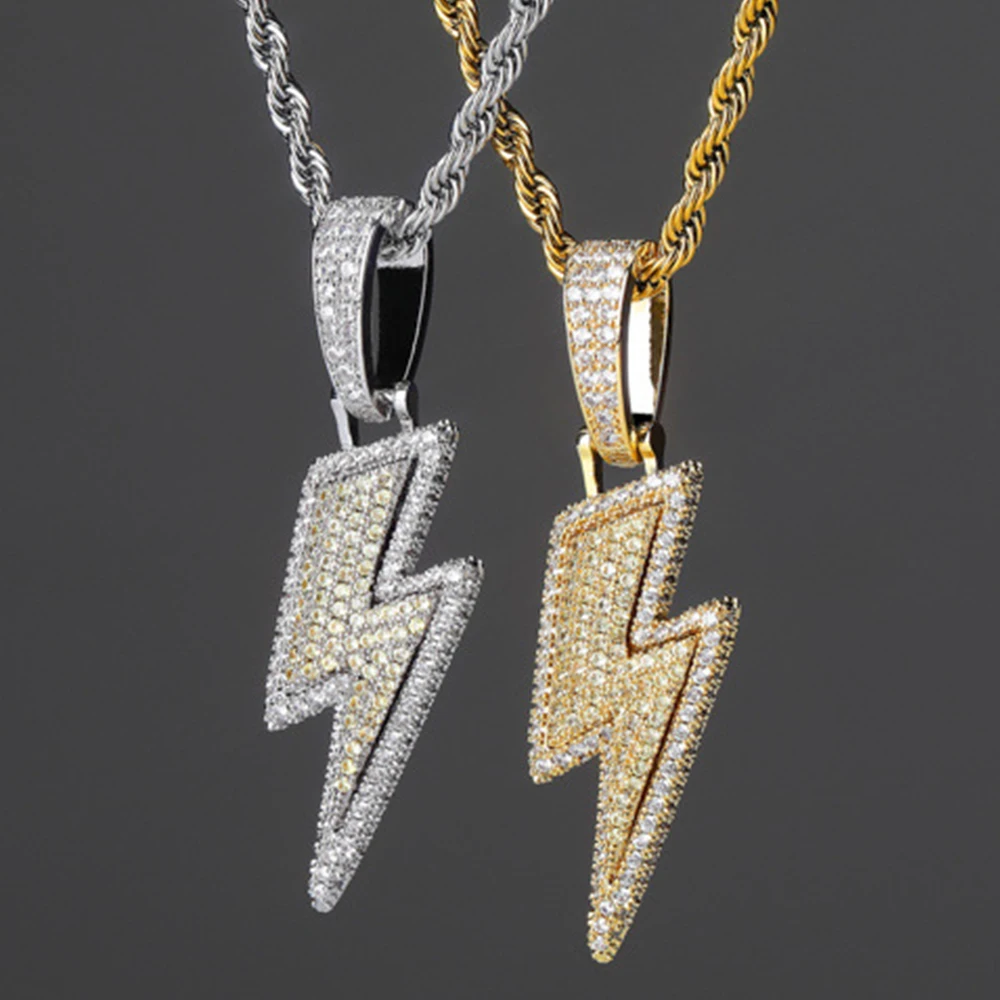 Ice out lightning hip hop pendant full of zircon hip hop men's fashion necklace jewelry gift
