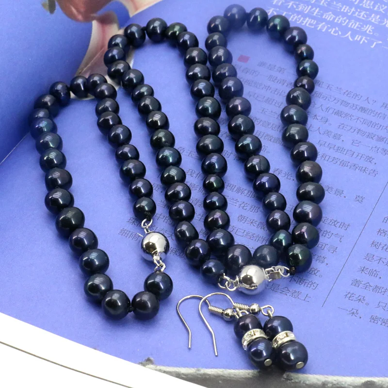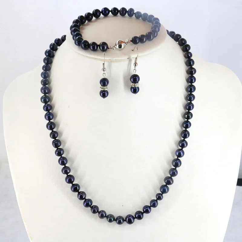 HOT SALE Women Gift word Love women Fashion Jewelry Black pearl necklace set 7-8mm DIY Beaded necklace 18" b