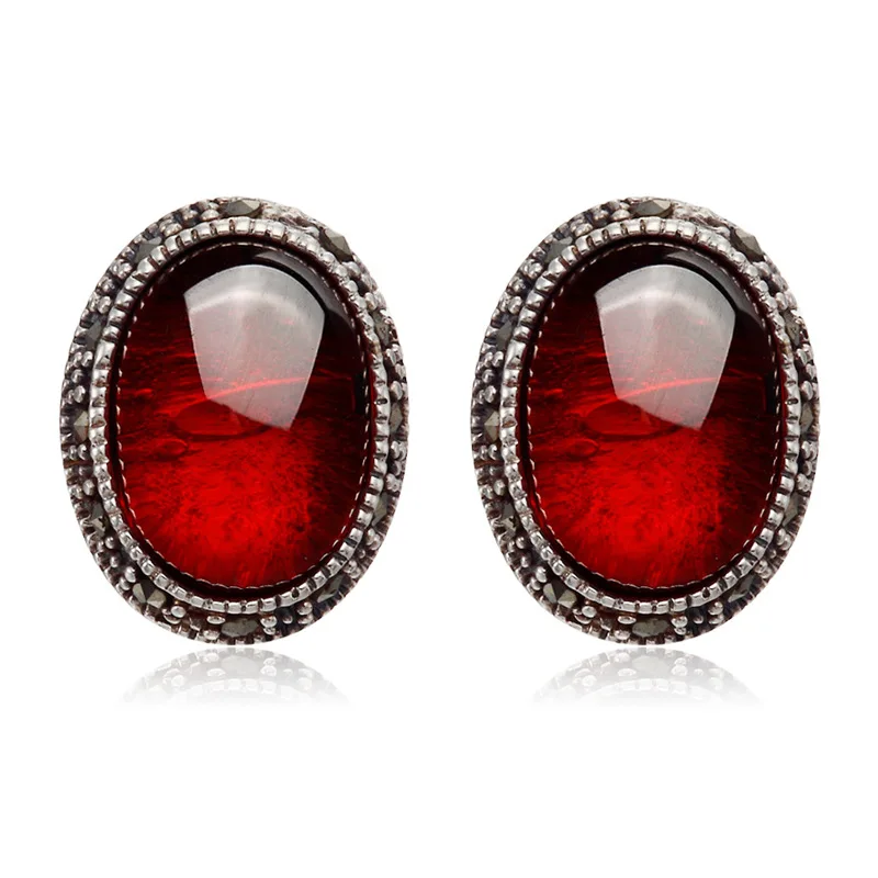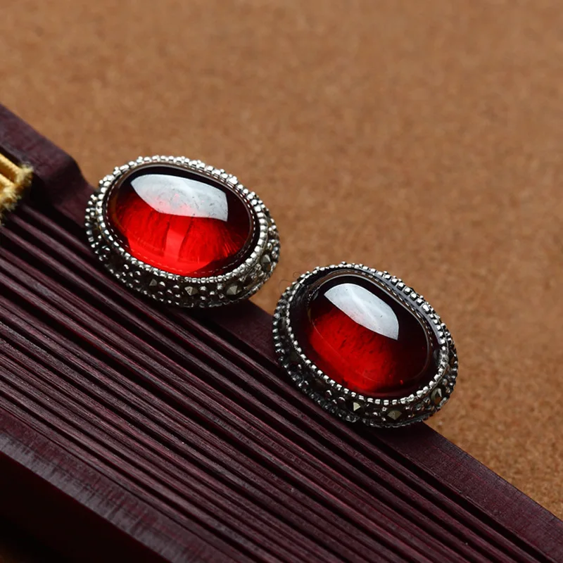 authentic 925 Sterling silver Retro oyal palace style red Natural semi-precious stones girls Garnet
