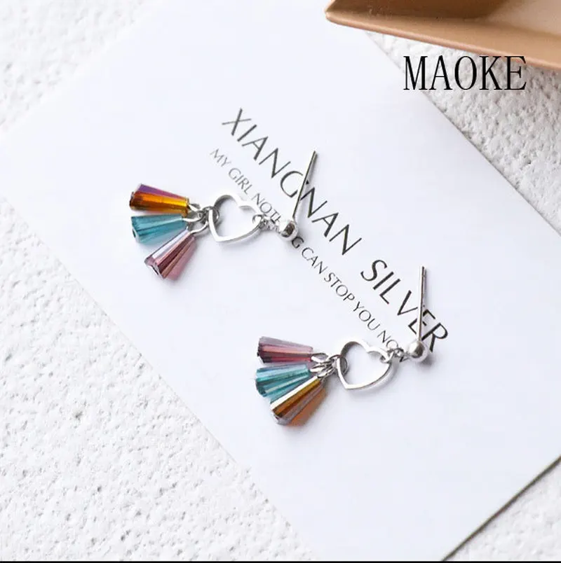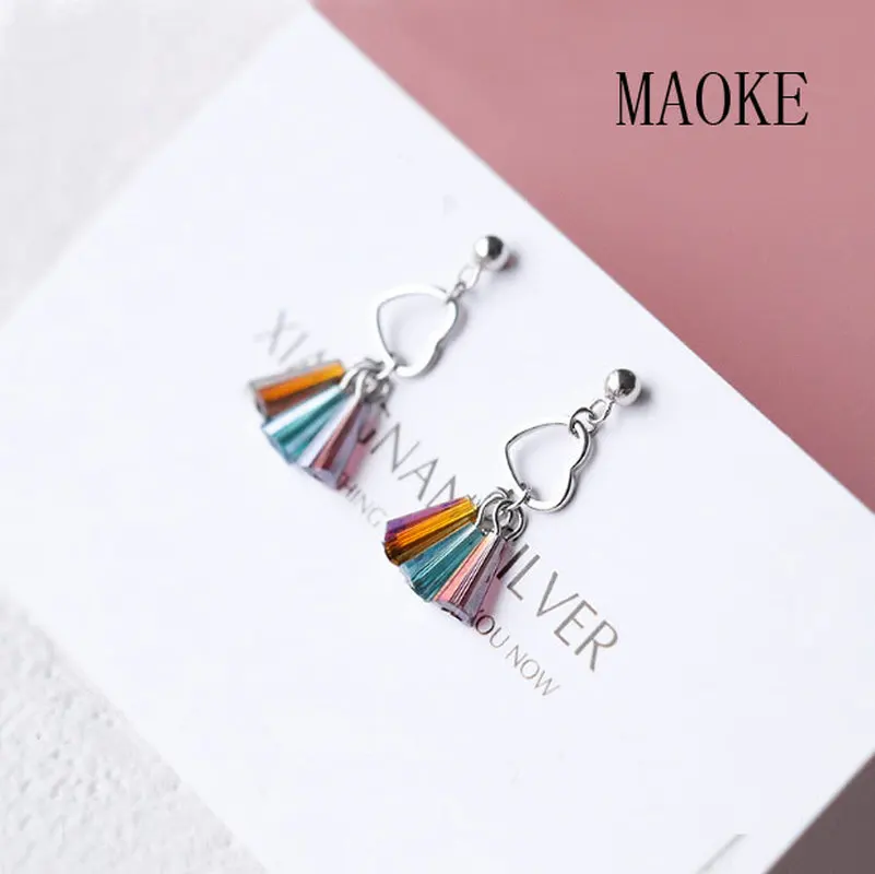 Review Promotions S925 Sterling Silver Hollow Love Three Color Ladder Drill Earrings Fashion Jewelry for W